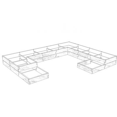 Hochbeet, dekorative Mauer für Park, L 454 cm x B 566 cm x H 29, 58, 87 cm