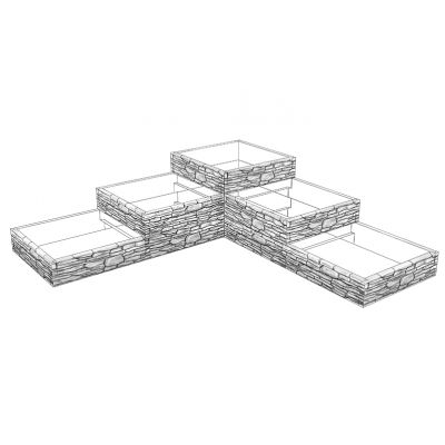Produktbeschreibung Langes Eck-Pflanzgefäß, Hochbeet, gestuft, Steinoptik, Pyramide L 342 x 342 cm