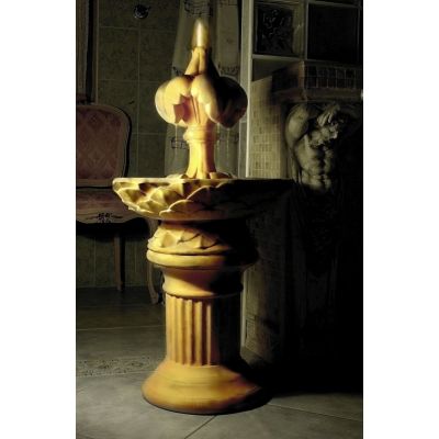 einer der kleineren Springbrunnen, der für den Betrieb in Gebäuden konzipiert ist. Ihr exotisches Aussehen und ?Geflüster? Der Wasserstrahl verleiht dem Innenraum eines jeden Büros, Saals oder Restaurants eine erstaunliche Atmosphäre und Originalität. Es passt perfekt in Wintergärten und Terrassen.