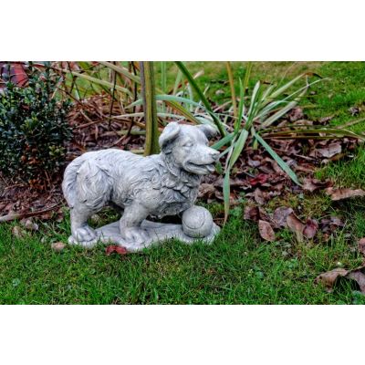 Steinfigur stehender Hund mit dem Ball H 23 cm