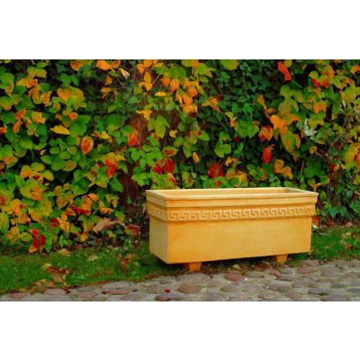 Ein rechteckiger Steintopf H 38 cm, mit einem Ornament, das auf den griechischen Inseln vorhanden ist. Schöne Form und das Konzept seiner Entwicklung verschönern die Terrasse und jede Wand.